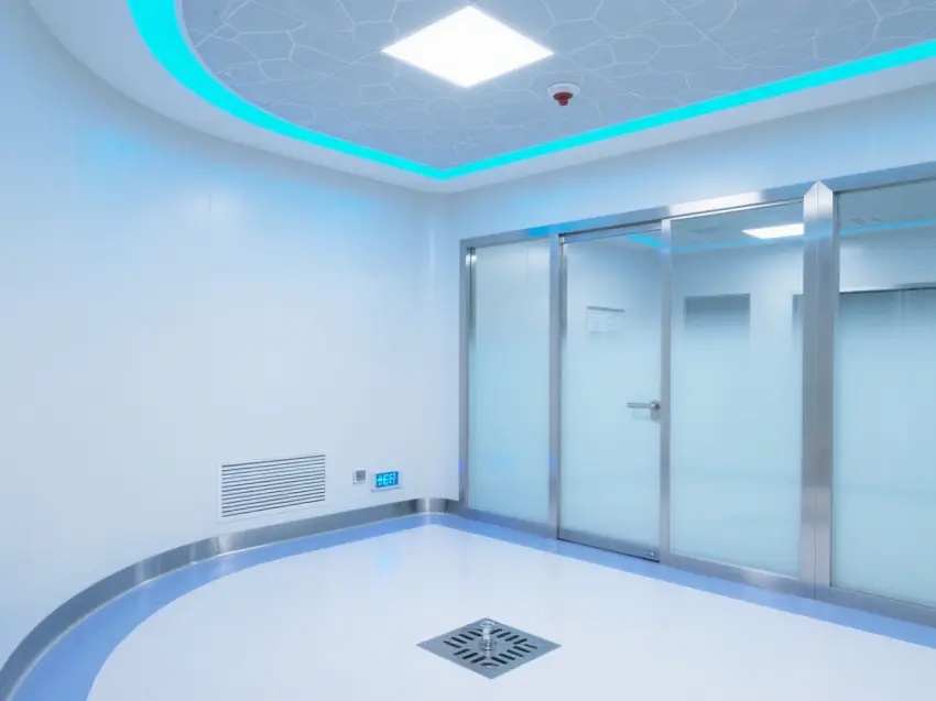 車間內設有多個玻璃門和窗戶,既保證了空間的通透感,又便于觀察內部情況。天花板上安裝了多盞方形的照明燈,提供充足的光線,同時還有通風設備,確??諝饬魍?。