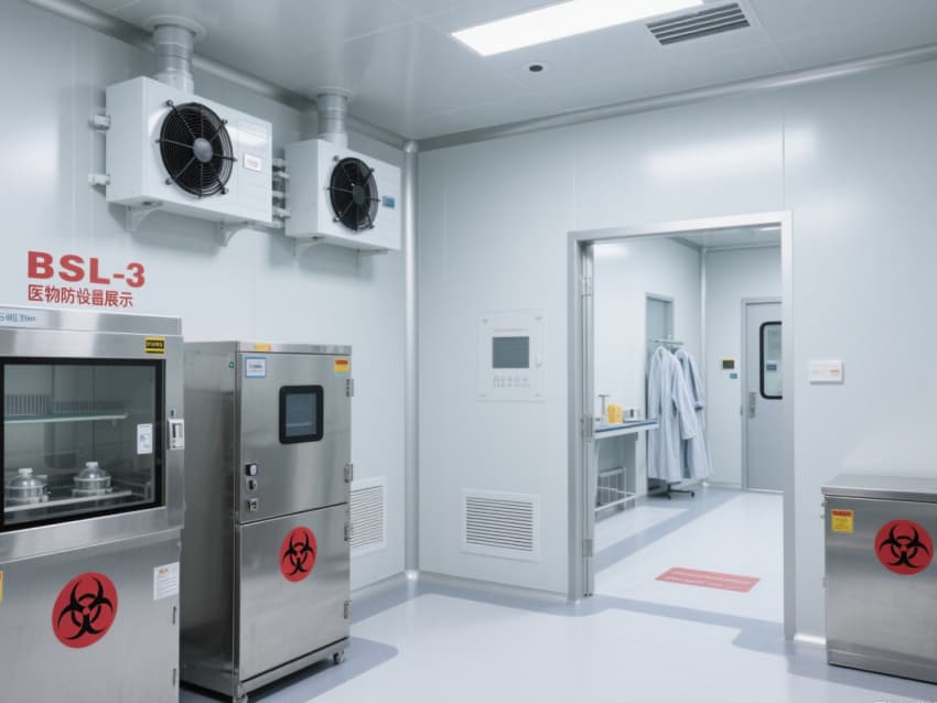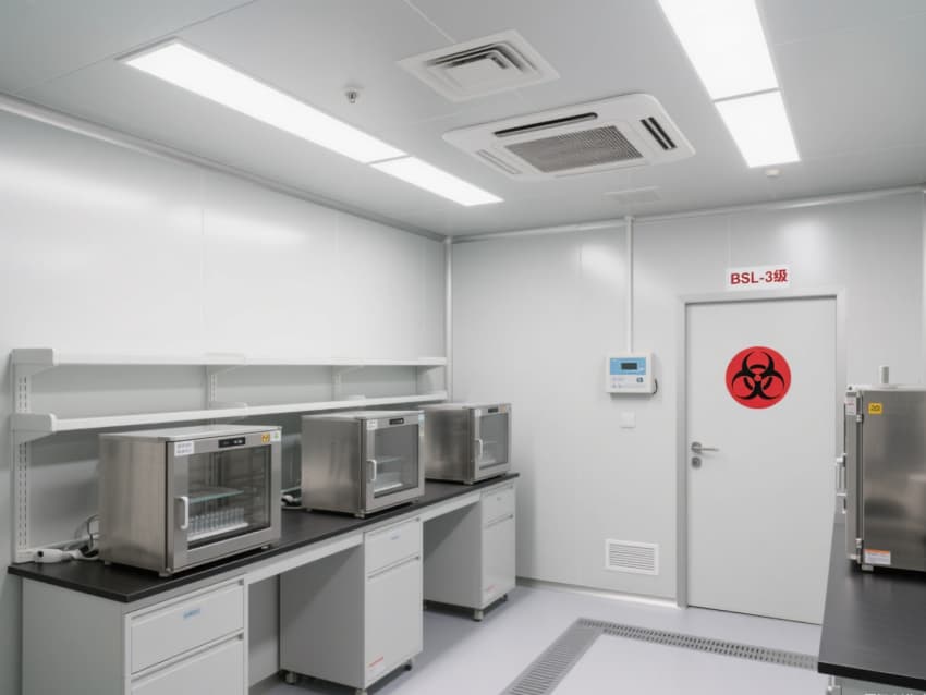 實(shí)驗(yàn)室核心區(qū)域配備負(fù)壓生物安全柜、雙扉高壓滅菌器,確保微生物操作與廢棄物處理安全;頂部高效空氣過(guò)濾器(HEPA)實(shí)現(xiàn)每小時(shí)15-20次空氣置換,尾氣經(jīng)消毒處理后排放,避免氣溶膠擴(kuò)散。互鎖式潔凈門(mén)、雙層鋼化玻璃觀察窗與應(yīng)急噴淋裝置,形成全流程安全保障。?