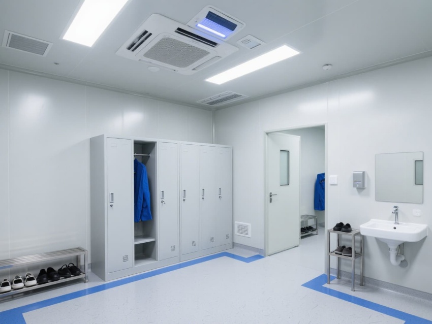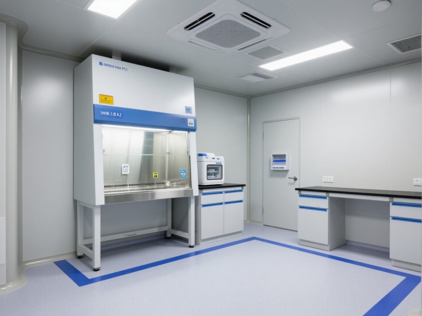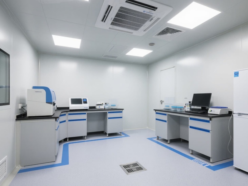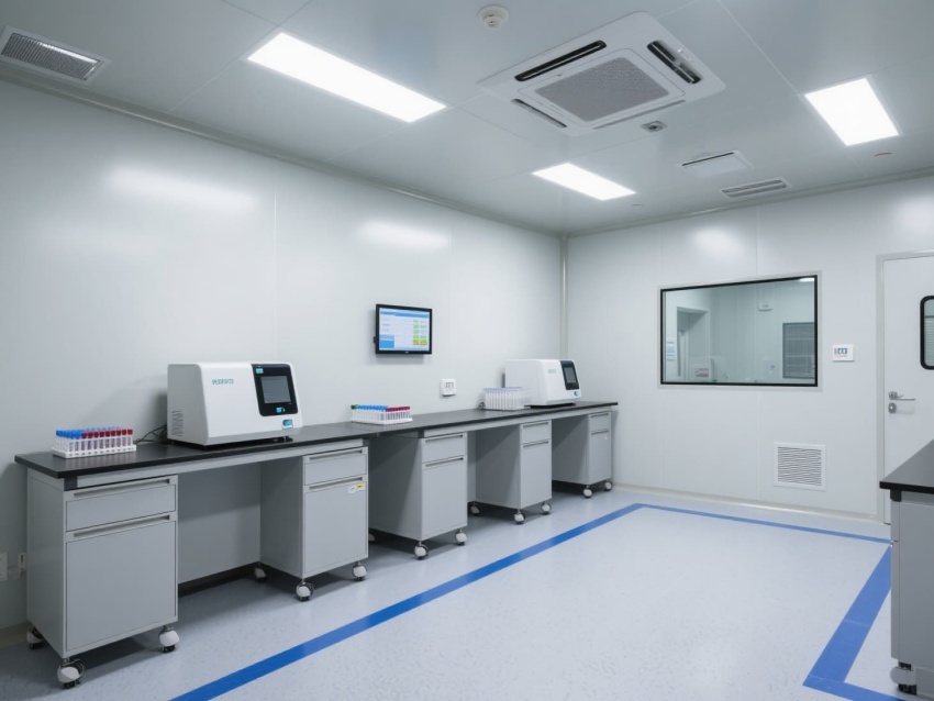 頂部高效過濾器與定向氣流系統(tǒng)維持每小時12-15次空氣置換,確保潔凈度達(dá)標(biāo)。墻面嵌入式消毒裝置與紫外燈系統(tǒng),可實(shí)現(xiàn)每日全方位消殺。實(shí)驗區(qū)配備負(fù)壓通風(fēng)柜與生物安全柜,臺面采用耐腐蝕環(huán)氧樹脂材質(zhì),適配PCR反應(yīng)的精密操作。