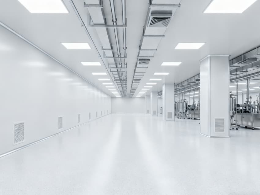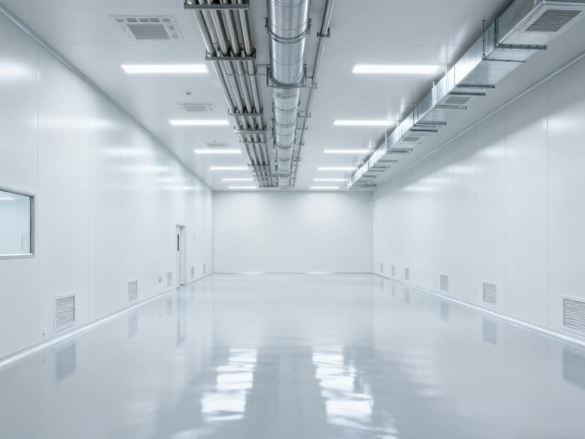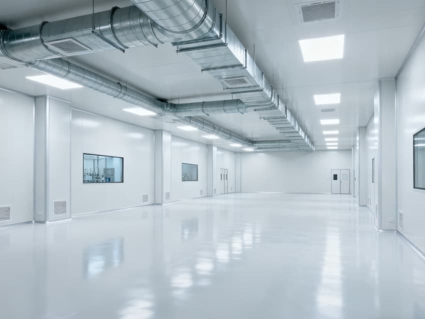 內(nèi)部6個核心生產(chǎn)車間均為無設(shè)備空曠布局,按萬級潔凈標(biāo)準(zhǔn)打造:地面鋪設(shè)無縫環(huán)氧自流平,墻面采用食品級不銹鋼墻板,陰陽角做圓弧處理,杜絕積塵死角;空間柱網(wǎng)間距均勻,預(yù)留充足設(shè)備安裝點(diǎn)位與運(yùn)維通道,滿足后續(xù)柔性生產(chǎn)需求;頂部吊頂整合新風(fēng)系統(tǒng)與防眩光照明模塊,風(fēng)口布局對稱規(guī)整,進(jìn)一步強(qiáng)化空間的空曠感與規(guī)整性,為生物制藥生產(chǎn)的潔凈性、安全性與可擴(kuò)展性奠定堅實(shí)基礎(chǔ)。