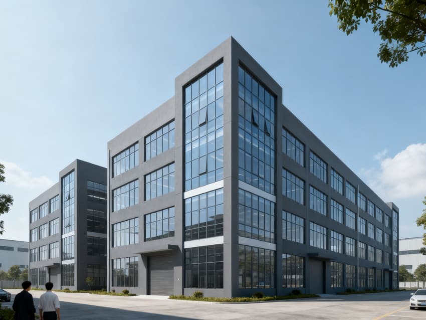 廠房外立面采用極簡工業(yè)風(fēng)設(shè)計,以淺灰防腐金屬板為主體材質(zhì),搭配橫向通長Low-E中空玻璃幕墻,線條規(guī)整利落,既凸顯生物制藥行業(yè)的嚴(yán)謹(jǐn)屬性,又通過大面積采光設(shè)計引入自然光線,降低能耗;墻面無冗余裝飾,僅在主入口處設(shè)置簡約項(xiàng)目標(biāo)識,強(qiáng)化空間的純粹感與辨識度。