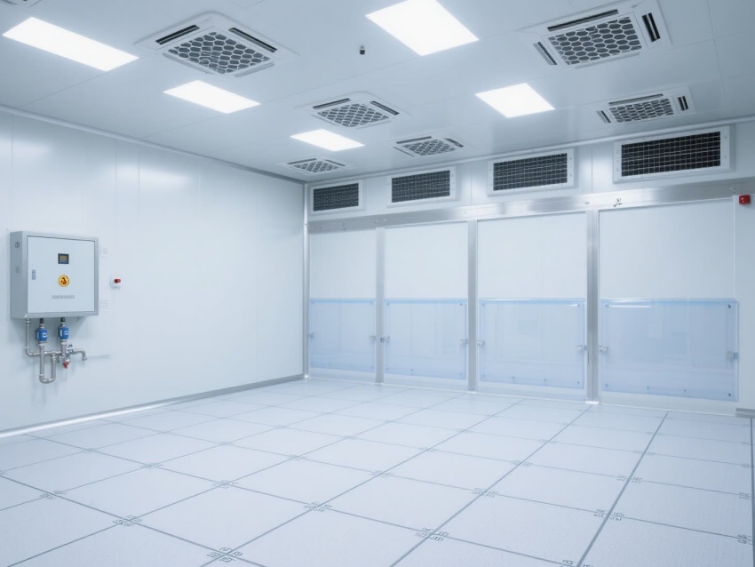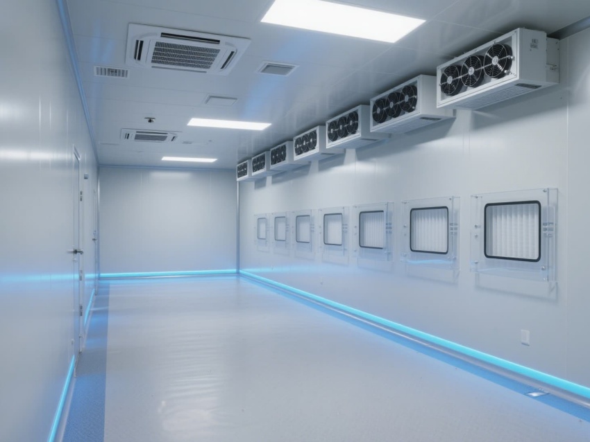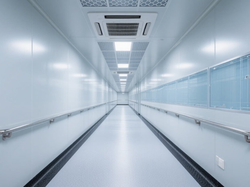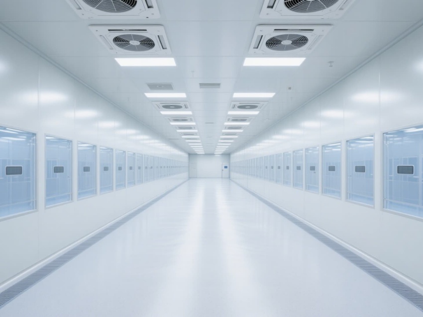 電子芯片廠無(wú)塵車間是芯片高精度生產(chǎn)的核心空間,其設(shè)計(jì)嚴(yán)格遵循百萬(wàn)級(jí)潔凈標(biāo)準(zhǔn)。車間以銀白色抗菌彩鋼板搭建墻體與吊頂,搭配淺灰色防靜電環(huán)氧地坪,形成簡(jiǎn)潔統(tǒng)一的視覺基調(diào)。頂部密布的高效過濾器與FFU風(fēng)機(jī)組,通過層流方式持續(xù)凈化空氣,確保每立方米空氣中0.5微米以上的塵埃顆粒不超過3520個(gè)。?