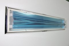 吸頂式不銹鋼直邊凈化燈,邊框采用鏡面不銹鋼制作,底盤采用冷軋鋼板靜電噴塑或采用不銹鋼材料,燈罩采用透明或乳白有機玻璃,配鏡面反射板,燈具線路可采用LED式或電子鎮(zhèn)