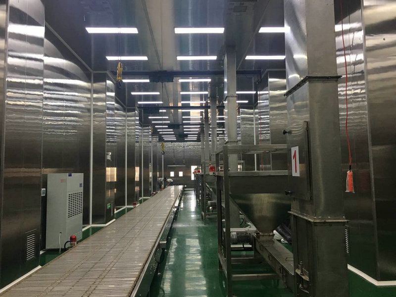 4.2 潔凈區天花采用中空玻鎂巖彩鋼板,整板厚度50mm, 車間面壁為不銹鋼厚度0.4mm,吊頂高度見方案圖。