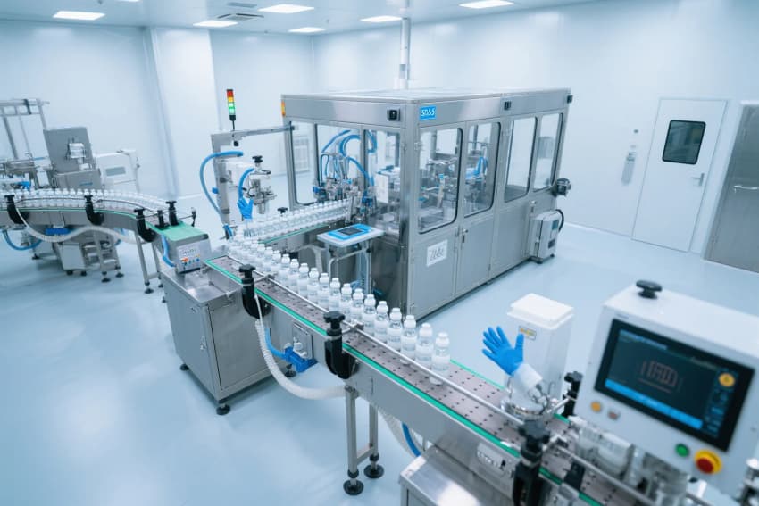 該藥劑生產(chǎn)車間嚴(yán)格遵循GMP(藥品生產(chǎn)質(zhì)量管理規(guī)范)標(biāo)準(zhǔn)建設(shè)。車間以白色為主色調(diào),搭配藍(lán)色標(biāo)識(shí)系統(tǒng),營(yíng)造出潔凈、規(guī)范的生產(chǎn)環(huán)境。墻面、地面采用無縫抗菌材質(zhì),便
