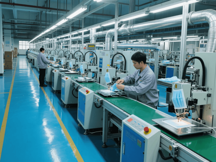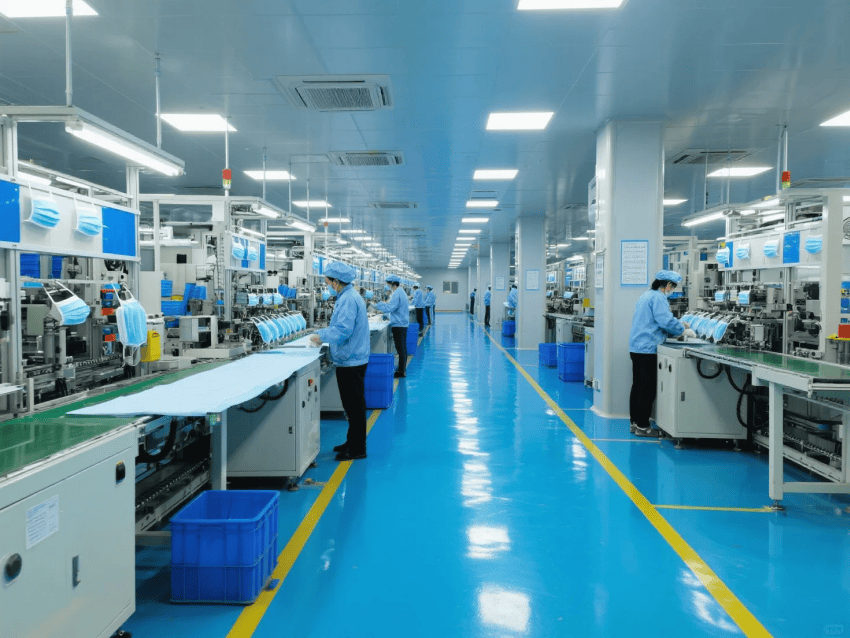 本方案采用"醫(yī)療工業(yè)極簡風",符合YY/T0969-2013口罩行業(yè)標準。車間按功能分區(qū):