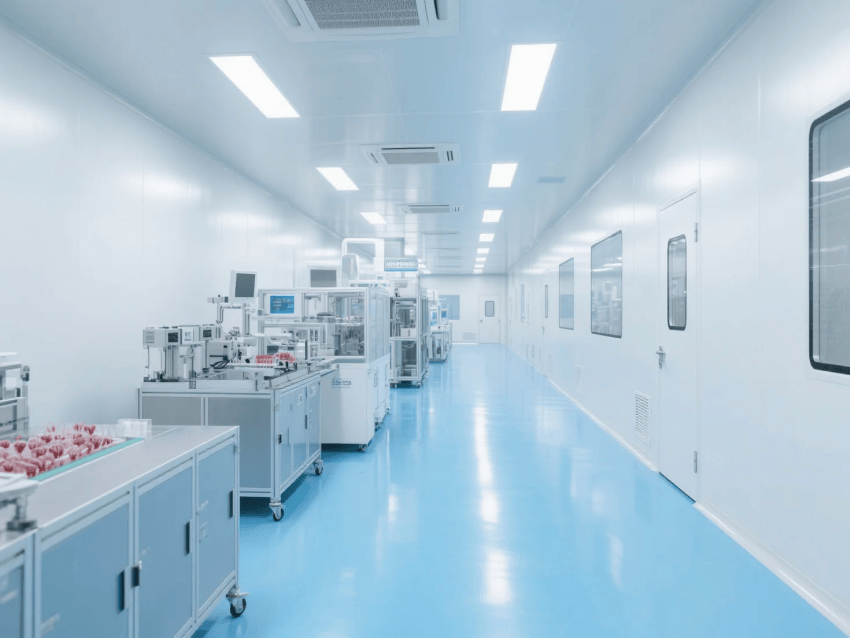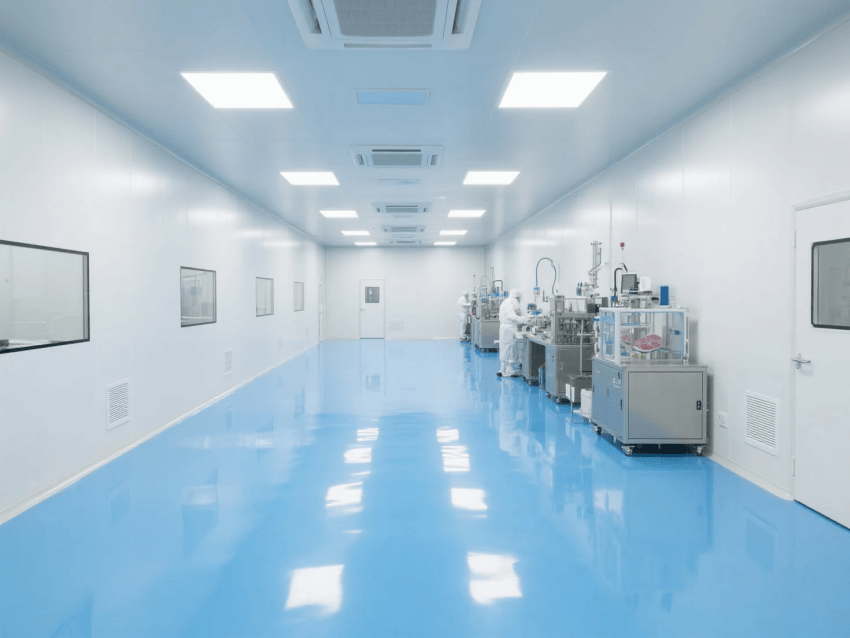 本工程嚴格遵循ISO14644-1Class7及GMP醫(yī)療器械生產(chǎn)規(guī)范,打造高標準的生物醫(yī)療器械制造環(huán)境。車間采用醫(yī)療級白色抗菌彩鋼板與淺藍防靜電環(huán)氧地坪的潔凈配色方案,營造安全、精準的生產(chǎn)空間。